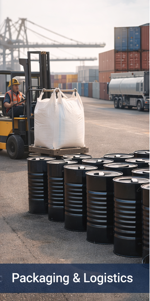 Flexible packing options: bulk, drums, and jumbo bags. Coordination for shipment planning and delivery schedule based on your destination requirements.